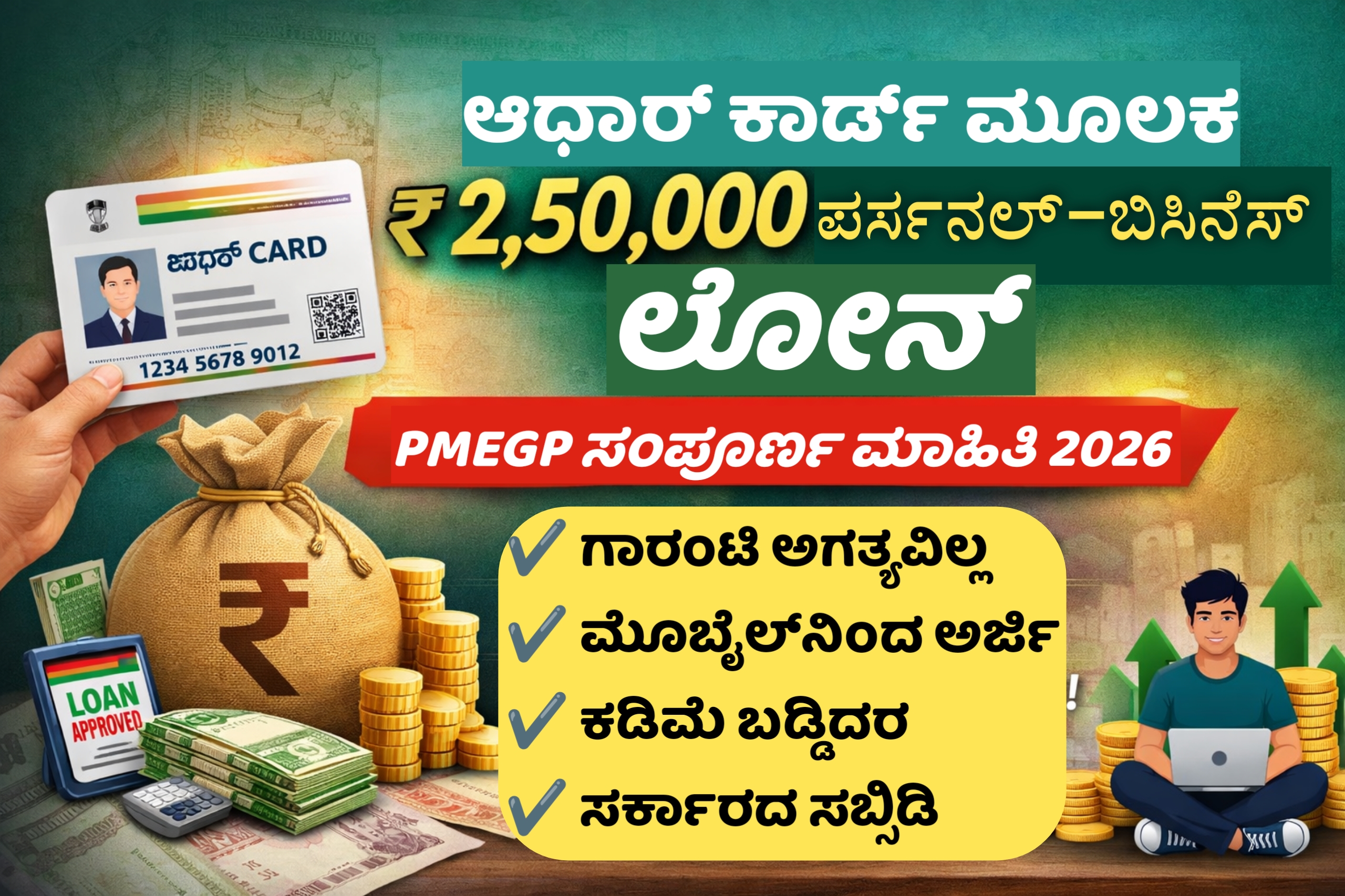ಆಧಾರ್ ಕಾರ್ಡ್ ಮೂಲಕ ₹2,50,000 ಪರ್ಸನಲ್–ಬಿಸಿನೆಸ್ ಲೋನ್ ಪಡೆಯುವುದು ಹೇಗೆ? PMEGP ಸಂಪೂರ್ಣ ಮಾಹಿತಿ 2026