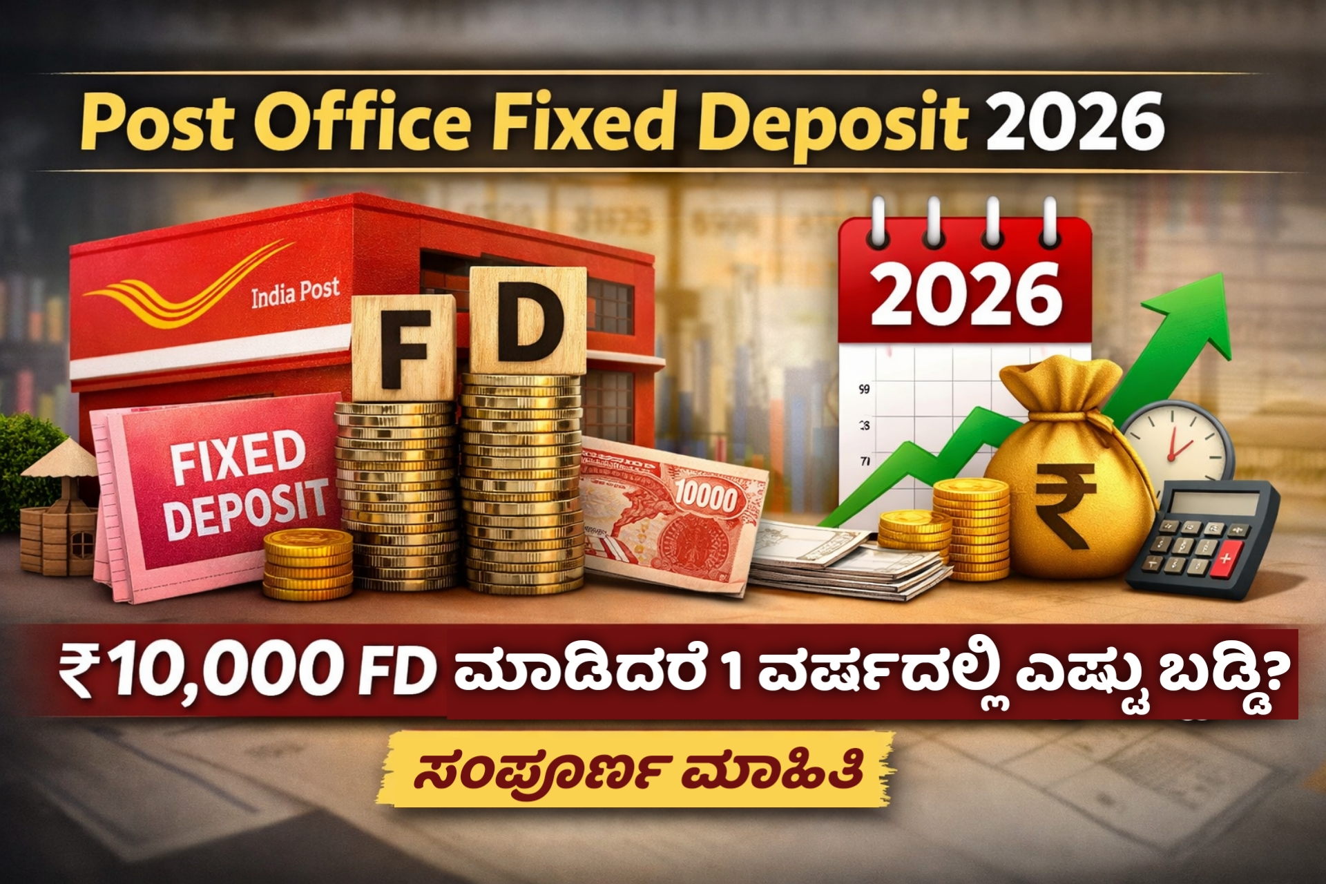 Post Office Fixed Deposit 2026: ₹10,000 FD ಮಾಡಿದರೆ 1 ವರ್ಷದಲ್ಲಿ ಎಷ್ಟು ಬಡ್ಡಿ? ಸಂಪೂರ್ಣ ಮಾಹಿತಿ