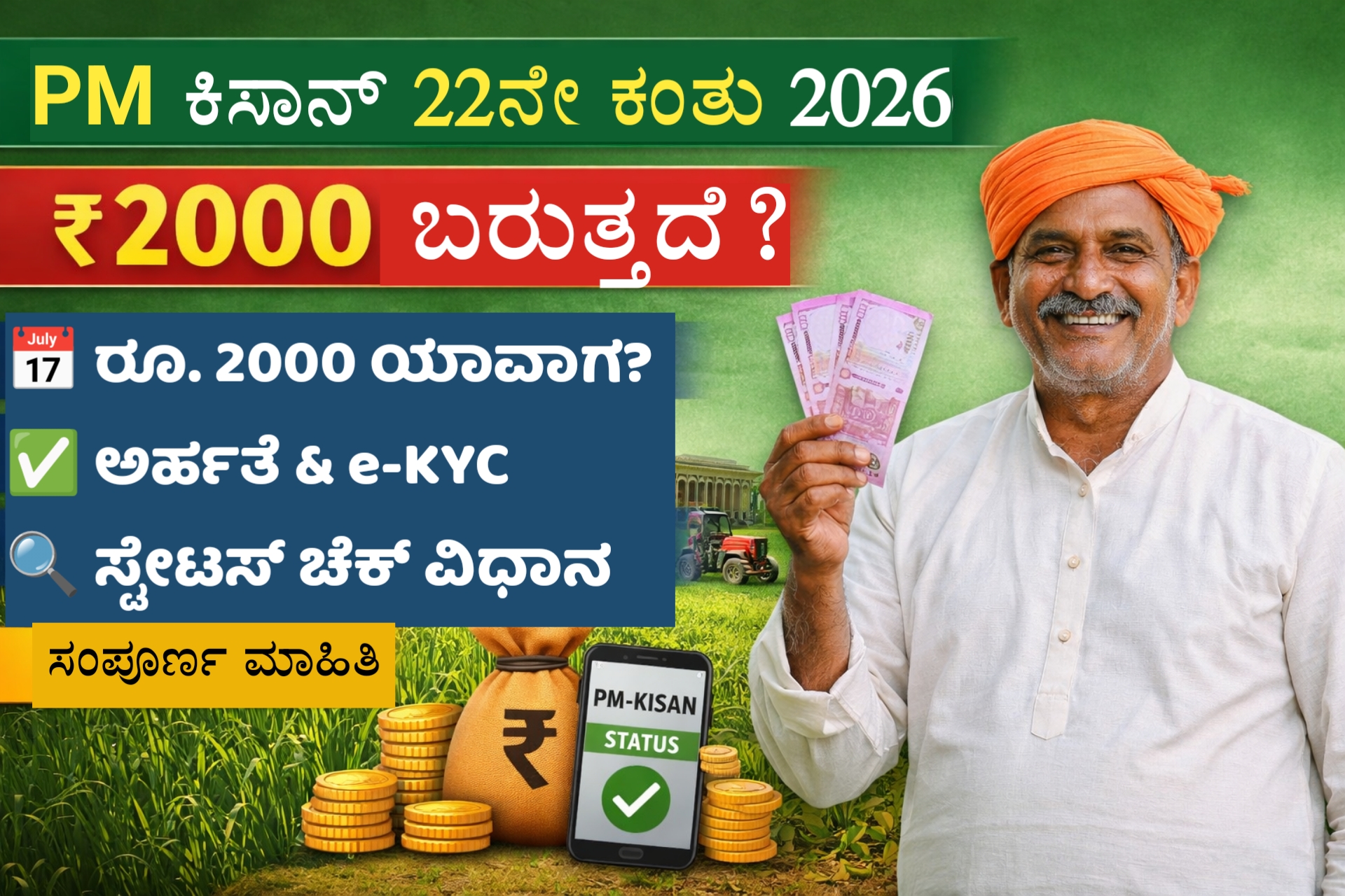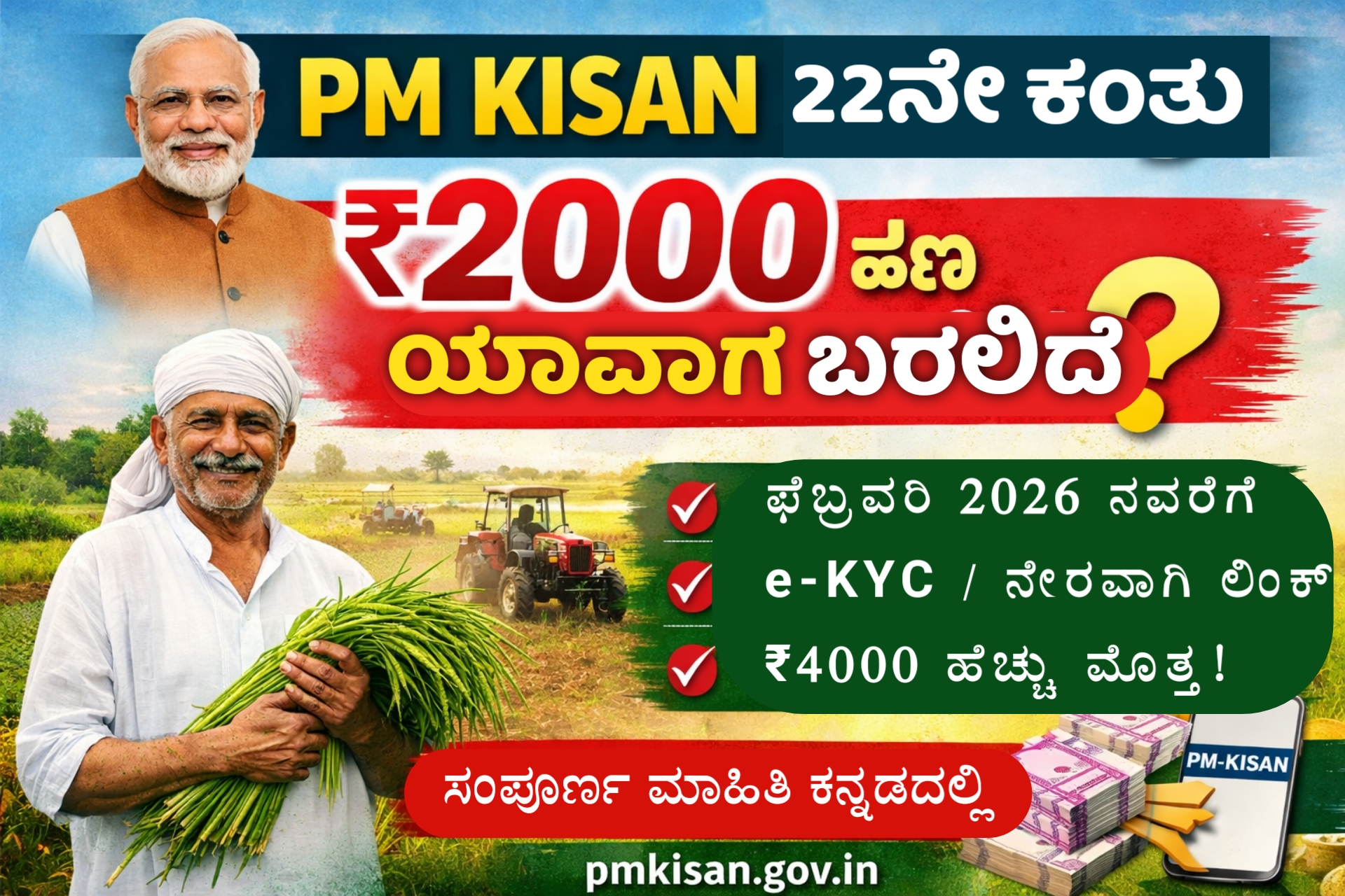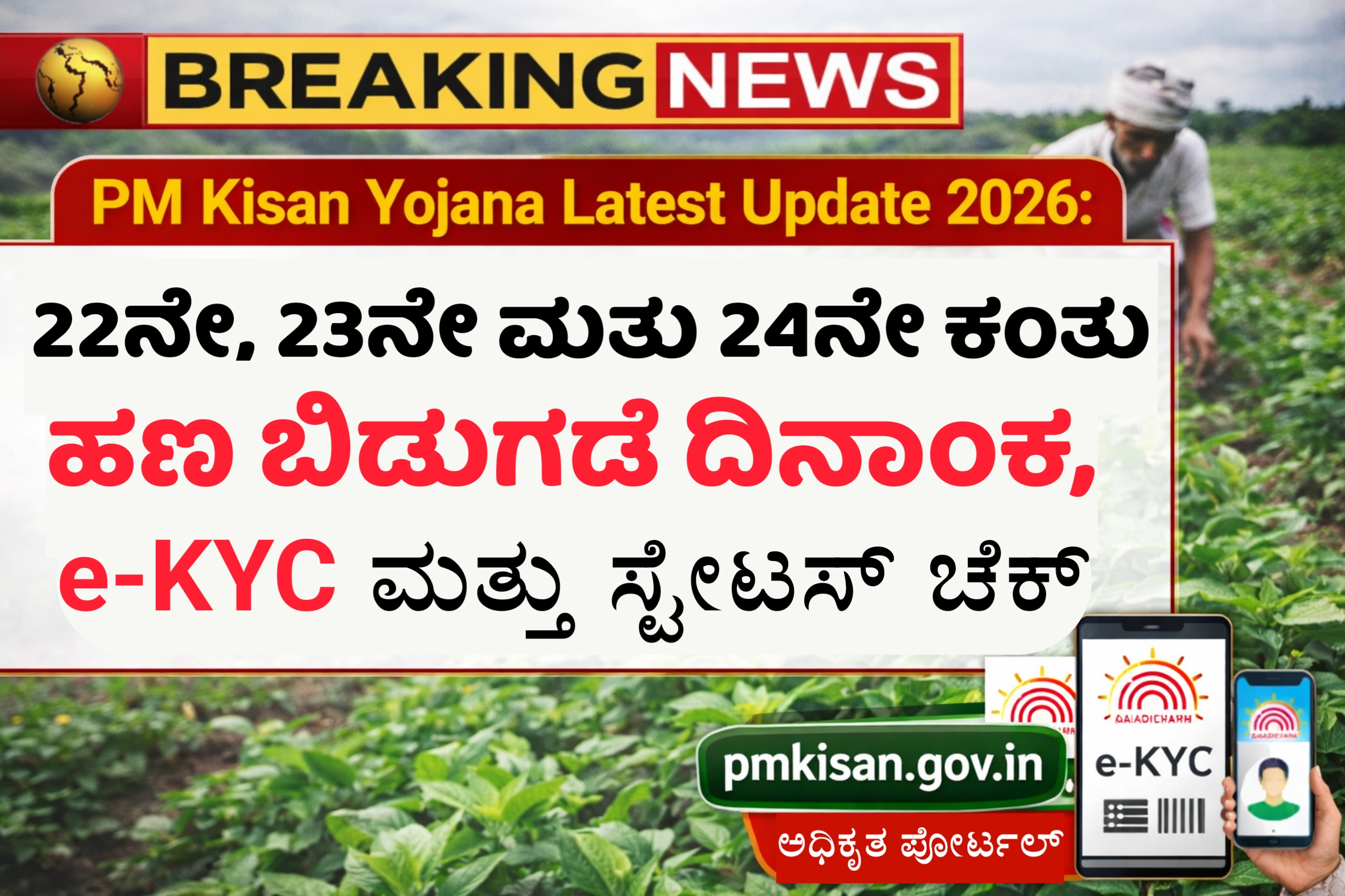 PM Kisan Yojana Latest Update 2026: 22ನೇ, 23ನೇ ಮತ್ತು 24ನೇ ಕಂತು ಬಿಡುಗಡೆ ದಿನಾಂಕ, e-KYC ಮತ್ತು ಸ್ಟೇಟಸ್ ಚೆಕ್
