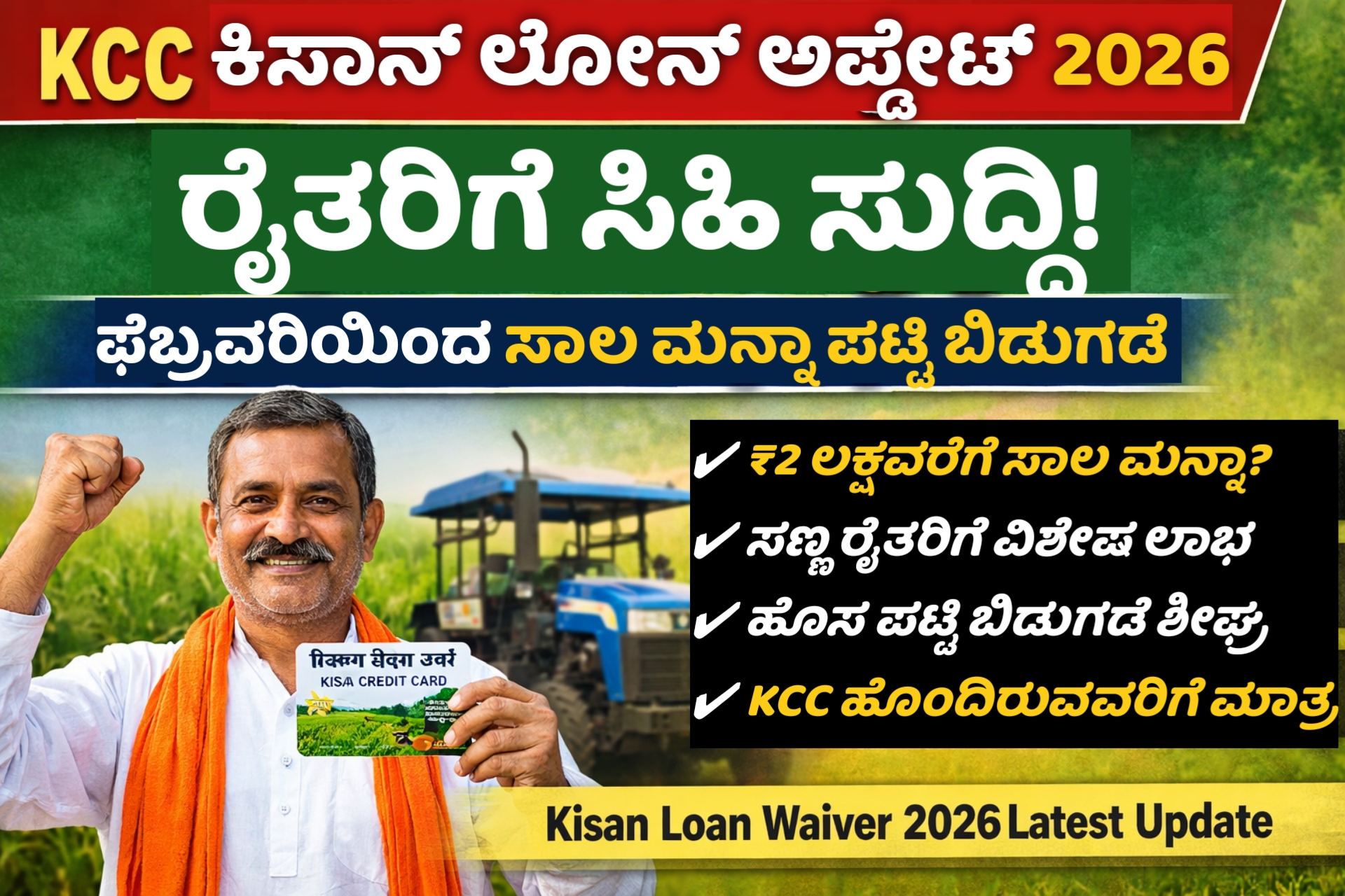 KCC Kisan Loan Update 2026: ರೈತರಿಗೆ ಸಿಹಿ ಸುದ್ದಿ | ಫೆಬ್ರವರಿಯಿಂದ ಸಾಲ ಮನ್ನಾ ಪಟ್ಟಿ ಬಿಡುಗಡೆ
