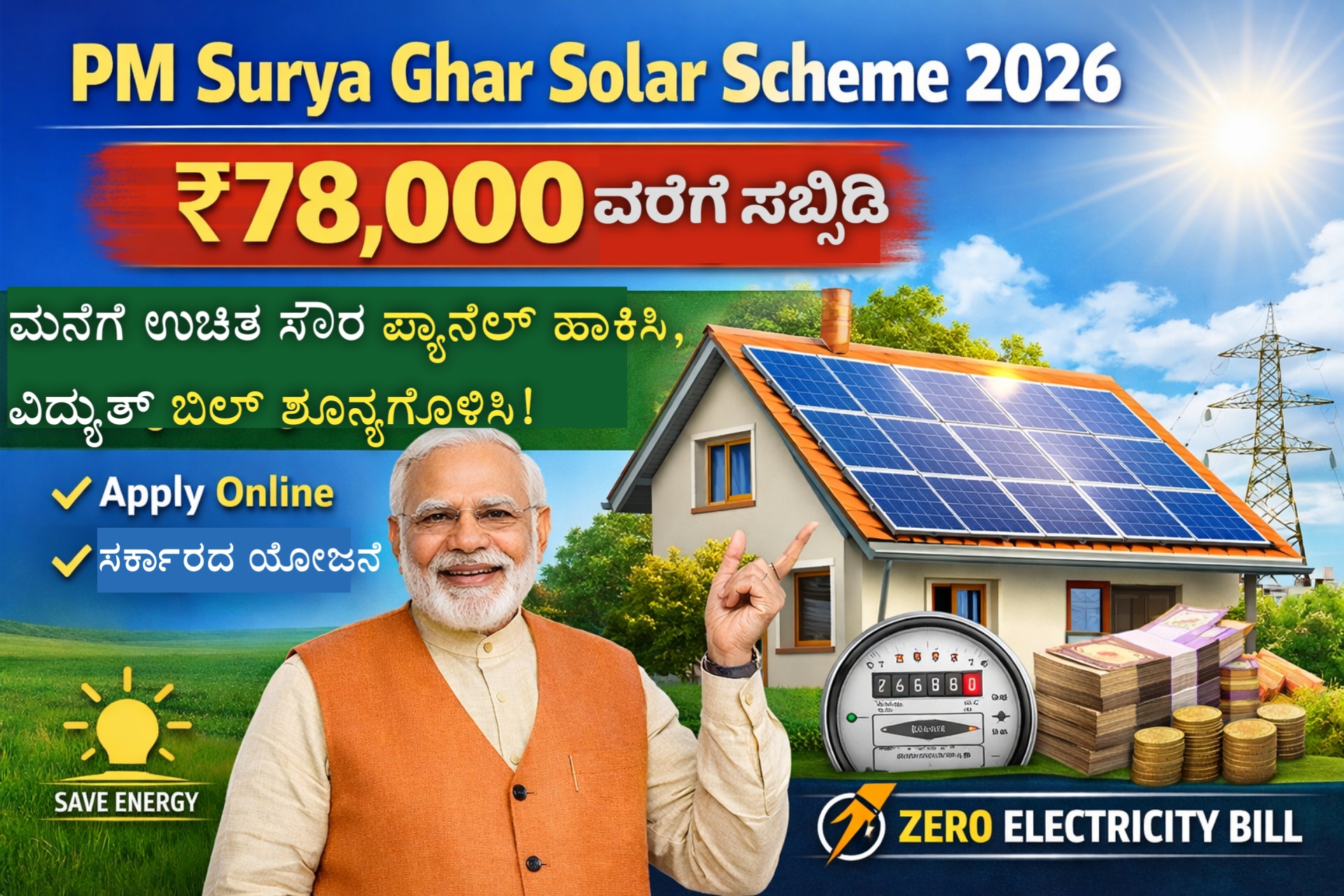 PM Surya Ghar Solar Scheme 2026: ₹78,000 ಸಬ್ಸಿಡಿ | Apply Online | ಸಂಪೂರ್ಣ ಮಾಹಿತಿ